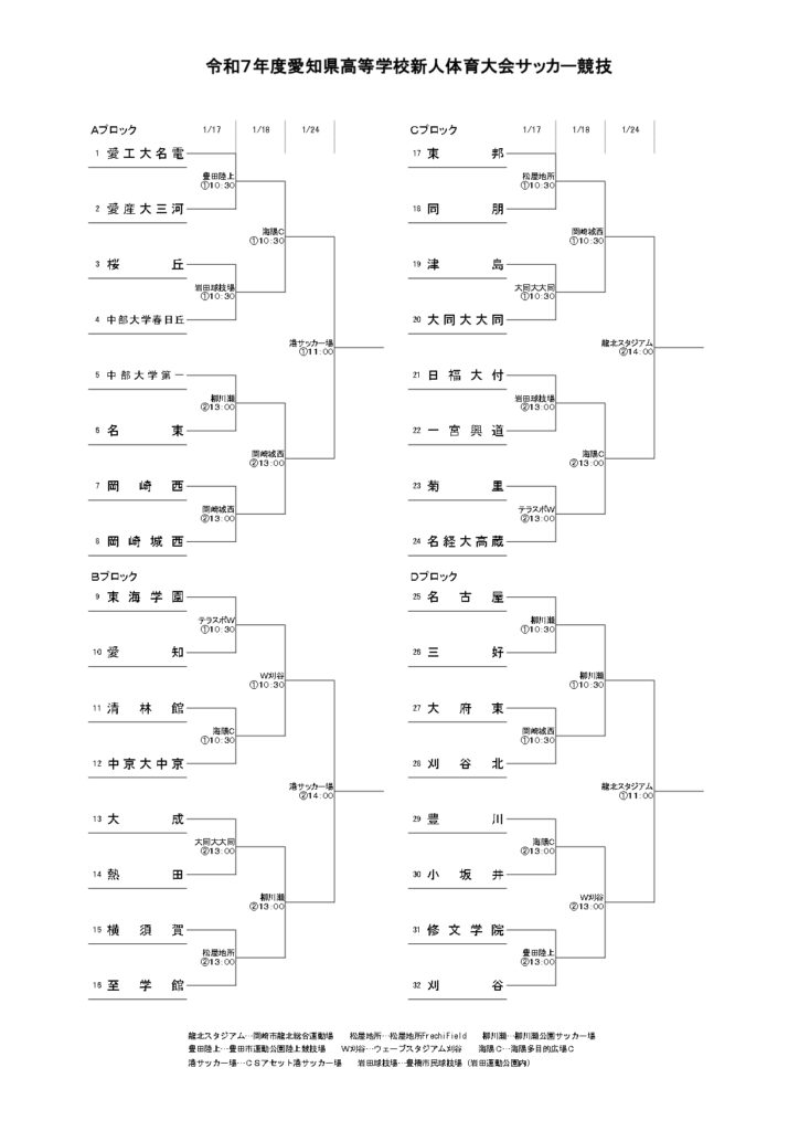 愛知県 新人大会高校サッカー2025-26結果速報や組合せまとめ