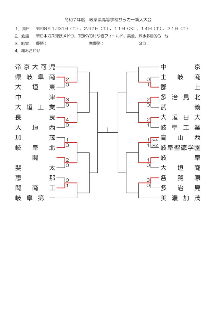 最終結果 岐阜県 高校サッカー新人 2025-26
