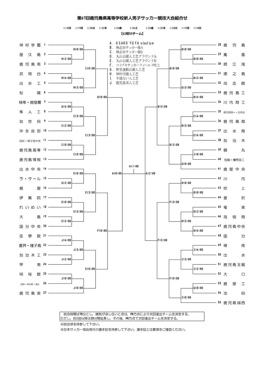 それでは、ここで 鹿児島県高校サッカー新人大会の試合速報(結果速報)をお届けします。