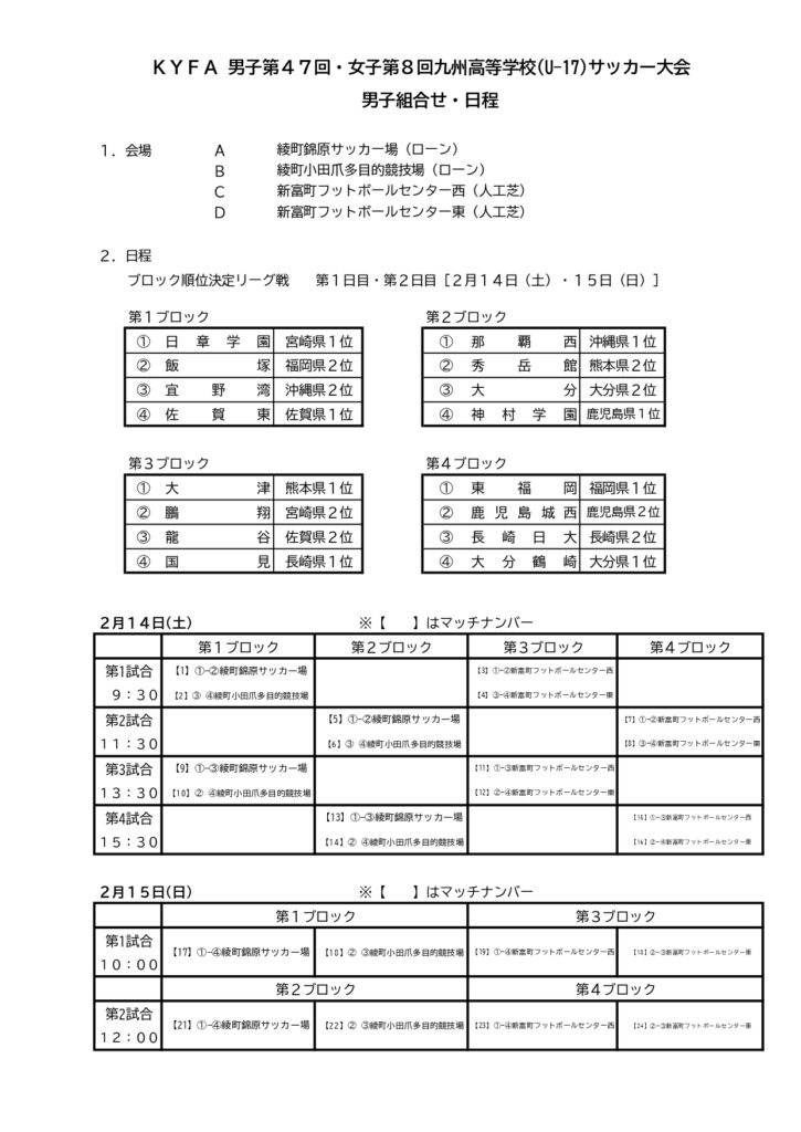 新人九州大会 サッカーの組合せ 2025-26