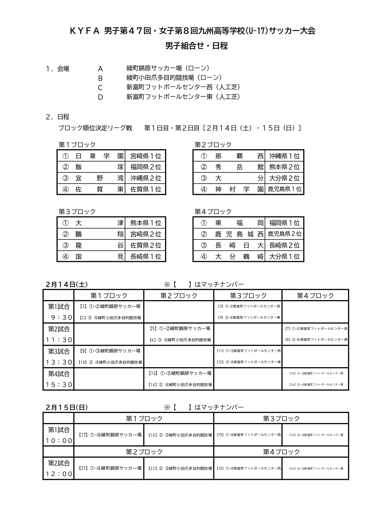 新人九州大会 サッカーの組合せ 2025-26