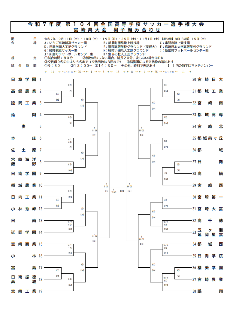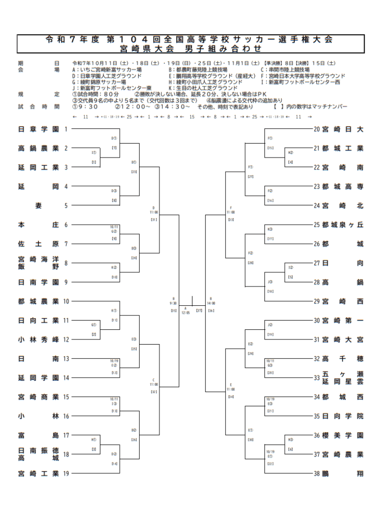 それでは、ここで全国高校サッカー選手権大会宮崎県予選2025の試合速報(結果速報)をお届けします。随時更新していきます。