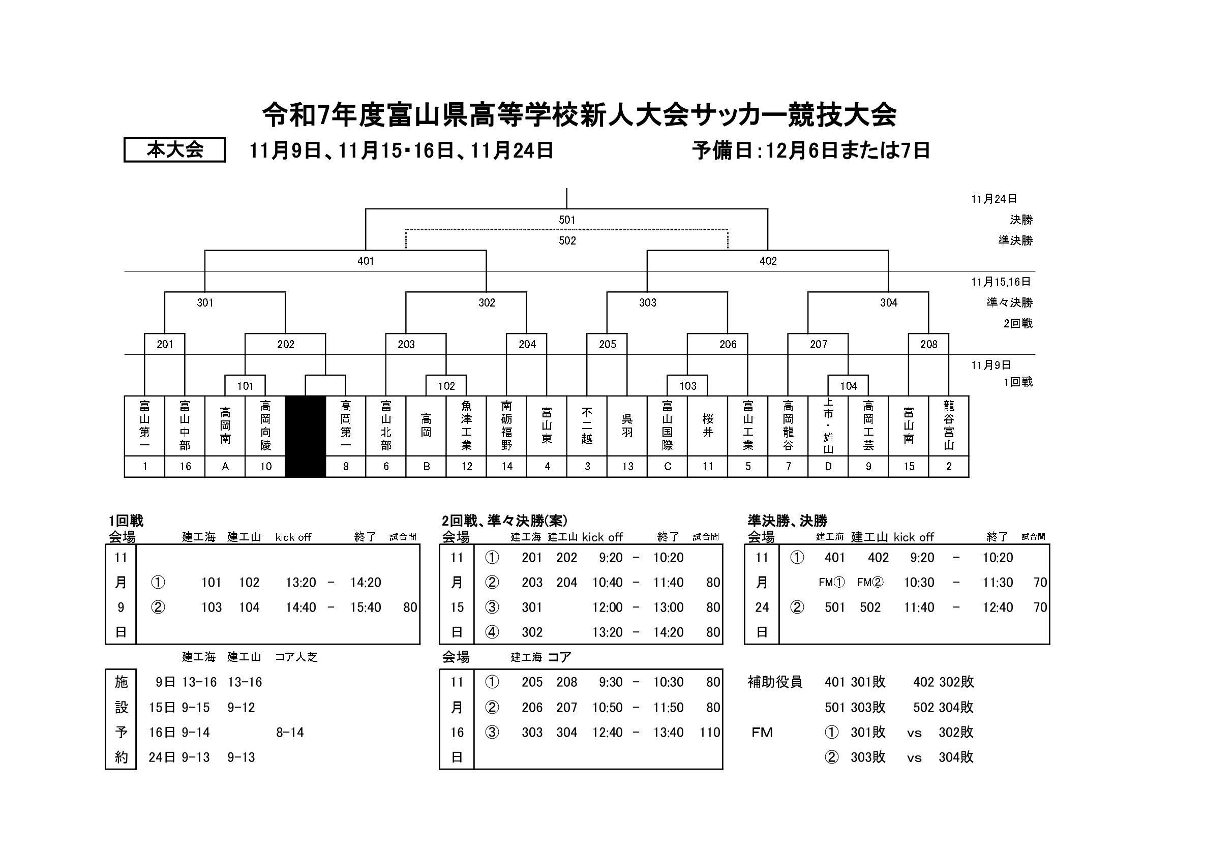 それでは、ここで 富山県高校サッカー新人大会の試合速報(結果速報)をお届けします。
